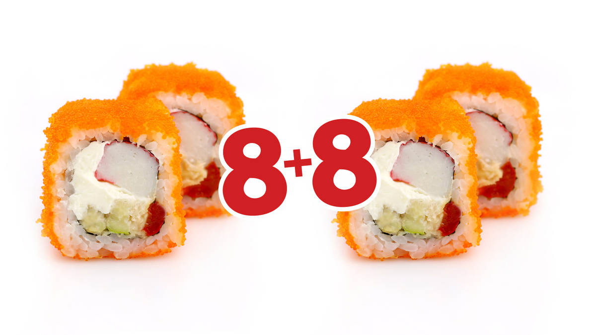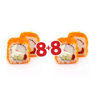 Salmon, avocado, cucumber, shiitake, grated cheese, piquant sauce, Tobiko roe