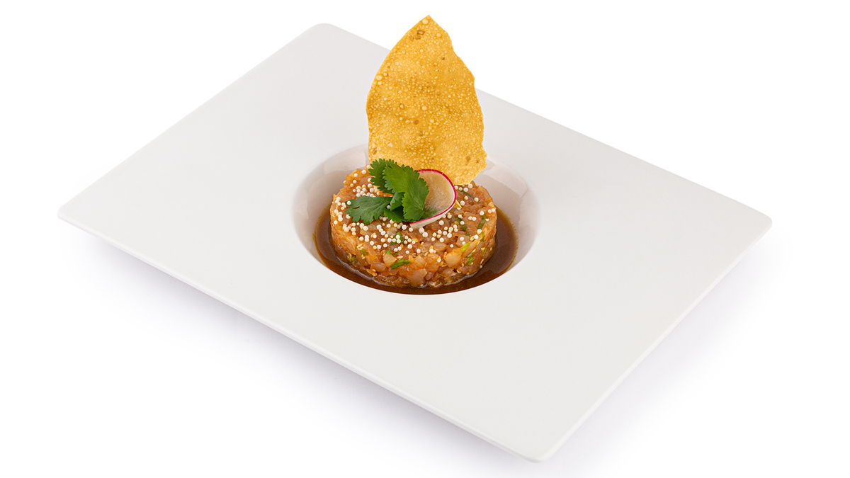 Tunų tartaras, avokadai, agurkai, Yuzu-Kosho majonezas, Panko