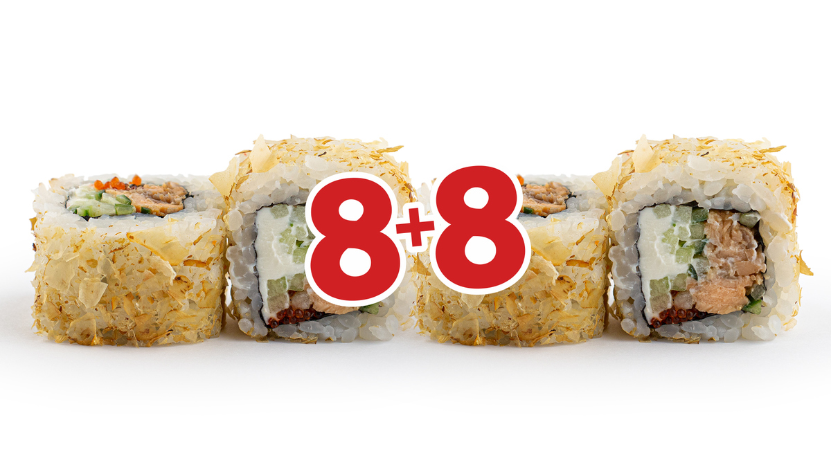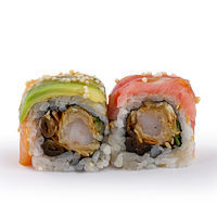 Lašišos, tunai, jūrų šukutės, tigrinės krevetės su migdolų drožlėmis, avokadai, Kanpyo moliūgai, agurkai, tepamasis sūris, Karashi padažas, sezamų sėklos