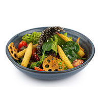 Avokadų tartaras, tofu, Poke padažas, marinuoti šitakiai, marinuoti kopūstai, morkos, Edamame pupelės, marinuoti svogūnai, Wakame, kalendros, ryžiai, sezamų sėklos