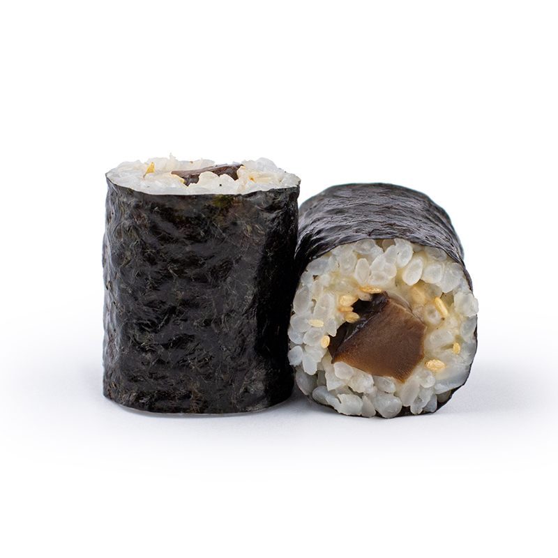Salmon, cucumber, kanpyo pumpkin, avocado, lettuce, cream cheese, sesame seeds